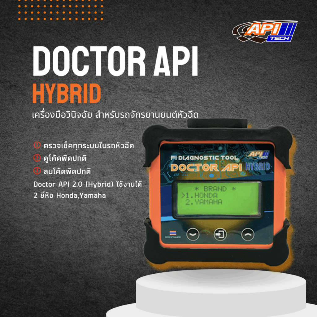 API Tech FI Diagnostic Honda (Dr.API Honda) เป็นเครื่องมือวินิจฉัยระบบหัวฉีดรถจักรยานยนต์ Honda ที่พัฒนาโดยบริษัท API Tech เพื่อรองรับการเปลี่ยนผ่านจากระบบคาร์บูเรเตอร์สู่ระบบหัวฉีดอิเล็กทรอนิกส์ (Fuel Injection) ซึ่งมีการควบคุมการทำงานผ่านกล่อง ECM/ECU และเซ็นเซอร์จำนวนมาก ทำให้การตรวจสอบอาการผิดปกติด้วยวิธีดั้งเดิมไม่เพียงพอ เครื่องมือนี้จึงถูกพัฒนาขึ้นเพื่อช่วยให้ช่างสามารถเข้าถึงข้อมูลการทำงานของเครื่องยนต์ได้อย่างแม่นยำและเป็นระบบ